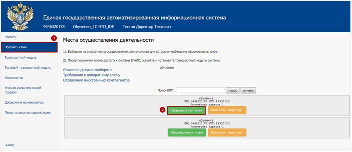 Войдите в личный кабинет ЕГАИС, перейдите в раздел «Получить ключ», сверьте данные организации, на которую необходимо получить RSA-ключ и нажмите кнопку «Сформировать ключ».