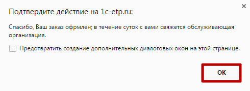 После успешной отправки перед Вами появится информационное окно с подтверждением, нажмите кнопку «ОК».