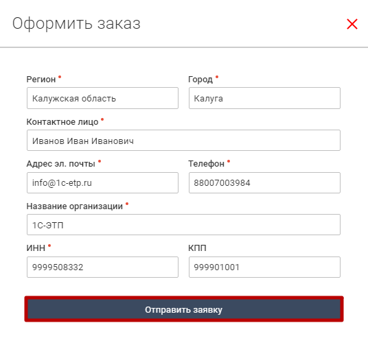 Перед Вами откроется форма для оформления предварительного заказа, заполните необходимые поля и нажмите на кнопку «Отправить заявку».