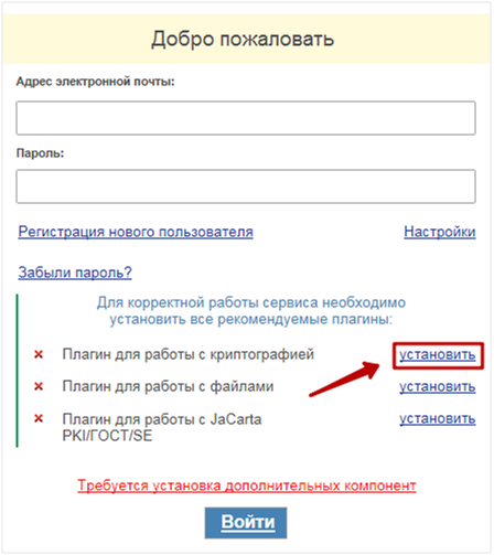 Для комплексной установки всех плагинов нажмите на строку «Требуется установка дополнительных компонент».