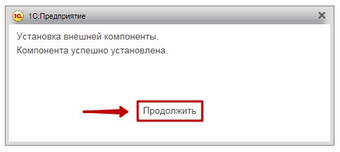 Внешняя компонента автоматически установится на компьютер, о чем появится соответствующее сообщение. Для того чтобы перейти к установке следующего плагина, Нажмите «Продолжить».